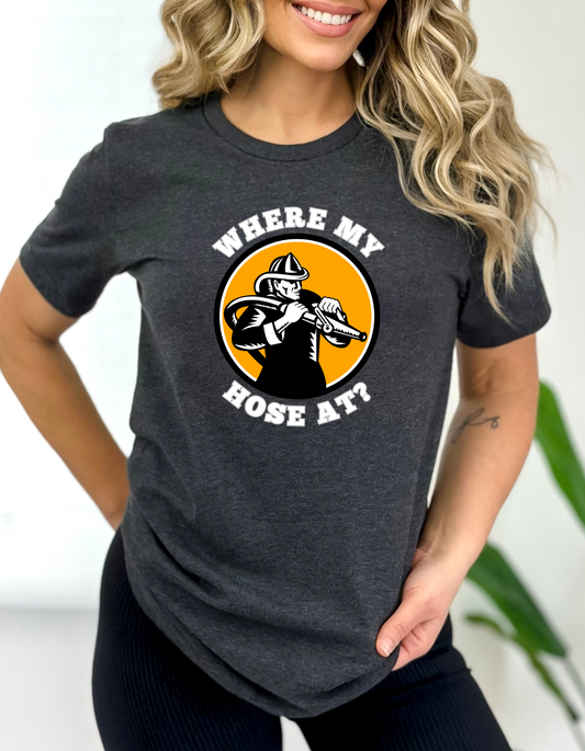 Unisex Where My Hose At? Funny Premium Firefighter T-Shirt